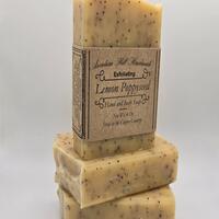 *There is never Lye left in the finished soap. A really wonderful chemical transformation happens when making old-fashioned soap. The fatty acids (oils) react with an alkali (in this case, lye) to form a completely new substance that is a salt (soap). I always add extra oils and butters to ensure that my soaps are not lye-heavy. This soap has an 8% superfat, meaning there is 8% oils/butters left over after the mixture has become soap, to moisturize the skin. It is well suited for all skin types.